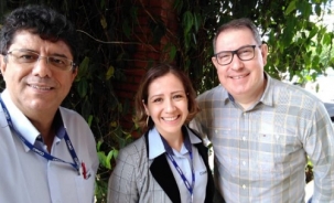 Em Campo Mourão - Rafael Henzel esteve em Campo Mourão em novembro do ano passado. Veio ministrar palestra em evento da Coamo. Na foto, com Ilivaldo Duarte (Imprensa) e Ana Cláudia (RH).