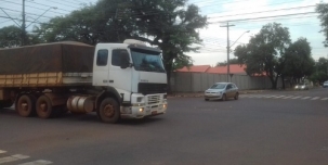 Carreta passa pela av. Irmãos Pereira na manhã desta segunda-feira.