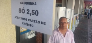 Sim, isso existe em Campo Mourão. É só procurar o Moacir Pereira de Andrade, ao lado das lojas Colombo. Ele atua no ramo há quatro anos e há um ano aderiu às operadoras de cartão. E tem cliente que paga um sorteve italano no cartão? "Tem sim", responde Moacir. "Em dezembro vendi R$ 1 mil no cartão". Isso dá 400 casquinhas.