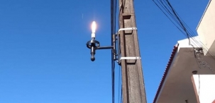 Na av. Capitão Índio Bandeira, abaixo da rua Roberto Brzezinski, a luminária não existe mais, mas a lâmpada continua acesa. Mesmo de dia!
