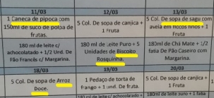 "Estão servindo pipoca, sagu, arroz doce, bolachas e outros alimentos com baixo valor nutricional", frisa o documento.