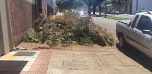 Calçada obstruída na av. José Custódio de Oliveira, em Campo Mourão.
