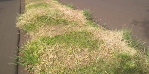 "Situação estranha no canteiro central da av. Comendador Norberto Mardondes. Será que aplicaram algum tipo de herbicida (Roundup)? Ou isto é efeito da falta de chuvas? O mato estava tomando conta e agora está secando..."