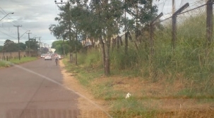 "Essa é a situação na av. Manoel Nogueira, no Lar Paraná. Esse trecho fica entre a escola Constantino Lisboa de Medeiros e creche Amor Perfeito. Do lado direito fica o campo de futebol do ginásio do Lar Paraná (terreno público e que não possuí calçada). Do lado direito é um pasto particular. Todos os dias, nós pais que vamos levar nossos filhos nas escolas temos que ficar ziguezagueando entre carros, motos e bicicletas. É questão de tempo acontecer um acidente".