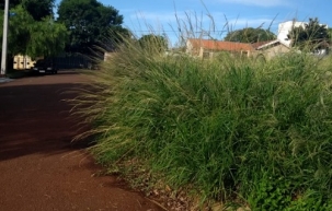 "Terreno tomado pelo mato entre as ruas Mandarim e Marins Pereira, no conjunto Cidade Verde (Santa Nilce 2). O matagal já ocupa parte da rua e da altura do muro das casas vizinhas".