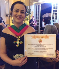 Olha aí a mourãoense Prescila Francioli, toda faceira, após receber o Prêmio Orgulho Acadêmico/2018, concedido pelo Núcleo Acadêmico de Letras e Artes de Portugal (Nalap). A entrega aconteceu Petrópolis/RJ. Trinta pessoas foram homenageadas. Prescila passou a fazer parte da Nalap.
