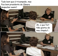 Corinthians tricampeão paulista no domingo, na segunda-feira o presidente da Câmara de Campo Mourão, Olivino Custódio, não pensou duas vezes. Foi trabalhar com a camisa do Timão. A diretora do colégio Marechal Rondon, Rita Cartelli, que tinha audiência com ele, foi testemunha do "corintianismo presidencial"...