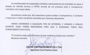 A Aboré frisa que só fez a troca pela necessidade da UTFPR e pela falta de recursos da prefeitura.