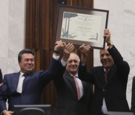 O senador Oriovisto Guimarães (PODE) recebeu semana passada o título de Cidadão Honorário do Paraná. Ele é o fundador do grupo Positivo. A homenagem foi proposta pelo deputado Márcio Nunes, que agora é secretário de Estado. A sessão teve a presença do govenrador, do vice-governador e dos outros dois senadores do Paraná.