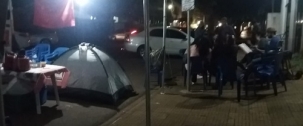 Um grupo de professores estaduais em greve se acampou em frente ao Núcleo Regional de Educação de Campo Mourão.