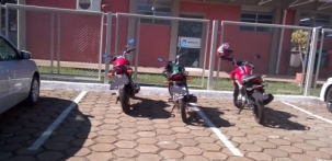 "Motos estacionadas em vagas de carros em frente ao Ciretran de Campo Mourão".