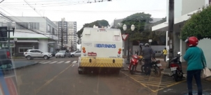 Difícil trânsito na cidade. Carro forte para as 9h30 na frente do Itaú e ninguém passa. Se quiser correr o risco de acidente tem que fazer manobra arriscada. Será que um dia o trânsito da cidade será fiscalizado?