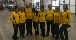 Equipe de atletismo do colégio Osvaldo Cruz (Campo Mourão) embarcou nestes sábado Pà noite rumo a Croácia para o Mundial Escolar de Atletismo. Na foto as atletas e o técnico Paulo César Costa estão no aeroporto, no Rio de Janeiro, a espera de outros membros da equipe brasileira.