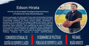 A Universidade Estadual do Sudoeste da Bahia vai promover dias 19 e 20 de junho o 1º Congresso Estadual de Gestão do Esporte e Lazer e o 3º Seminário de Políticas Públicas de Esporte e Lazer. Será em Jequié/BA. E o que é que a gente tem a ver com isso? Tem que olha aí quem será um dos palestrantes. Ele mesmo, Edson Hirata, o "China", de Campo Mourão, que é professor na UTFPR e presidente da Amobasquete.