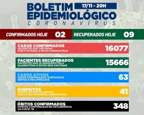 Dois casos de covid-19 foram confirmados nesta quarta-feira em Campo Mourão. Os recuperados foram nove. O número de casos ativos caiu para 63. Na ala covid as internações subiraram para nove, sendo sete na UTI. Dois mourãoenses estão na unidade de terapia intensiva.