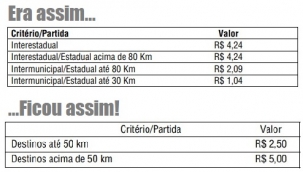 Ir para Maringá, por exemplo, agora custa R$ 5,00 de embarque (antes era R$ 4,24).