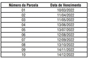 O texto inclui o calendário para quem optar em pagar em 10 vezes (veja acima).