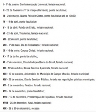 O próximo é o carnaval, com "ponto facultativo" em 28 de fevereiro e 1 de março, além de 2 de março até as 13h30.