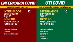 O boletim desta terça-feira mostra 10 pessoas internadas na UTI Covid de Campo Mourão.