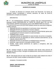 O prefeito de Janiópolis, Ismael Dezanoski, baixou novo decreto de enfrentamento ao coronavírus.