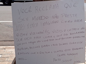 Cartaz deixado no centro de Campo Mourão (rua São Paulo), assinado por "Poeta S.C. Silva";