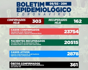 Mais 303 casos de covid-19 foram confirmados nesta quarta-feira em Campo Mourão. Ficou abaixo do recorde do dia anterior (400), mas o número de casos ativos passou de 2.800 pela primeira vez. Ou seja: 2.878 é o novo recorde. Na ala covid a taxa de ocupação de leitos do SUS é de 112% na enfermaria e 60% na UTI.