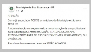 Motivo? Todos os quatro que atendem no posto de saúde positivaram para a covid-19.
