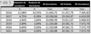 Boca Santa já mostrou como vai ficar os salários dos agentes políticos de Campo Mourão a partir de janeiro, com reajuste de 9,26%. Só agora, com esse aumento, os subsidios ficarão maiores daqueles que eram pagos em 2016. Isso porque os valores tiveram quenda de 9,38% em 2017, reajustes pequenos em 2018 e 2019 e nada em 2020 e 2021.