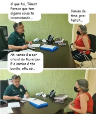Olha só o prefeito de Campo Mourão, Tauilo Tezelli, despachando na manhã desta segunda-feira com a secretária de Educação, Tânia Caetano. Sim, o prefeito foi trabalhar com a camisa do Palmeiras. Pudera. Foi o primeiro dia útil após o Verdão conquistar o tri da Libertadores. Em tempo: a família de Tânia é Flamengo...
