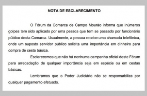 Tem gente dando golpe em Campo Mourão usando o nome do Fórum.