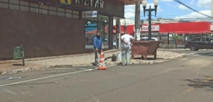 "Pintura de faixas em plena sexta-feira, dia que comércio inicia a abertura à noite? Falta de Planejamento ou pintam esse horário para todos ver o trabalho da prefeitura?"