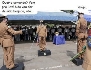 O clic é desta quarta-feira, durante troca de comando no 11.o BPM de Campo Mourão. Saiu o tenente-coronel Cléverson Vidal Veiga,que está indo para a reserva, entrou o tenente-coronel Adauto Nascimento Giraldes Almeida. E fique tranquilo: a espada em punho faz parte do ritual de transmissão de cargo...