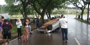 Carro capota na av. Irmãos Pereira, próximo à av. Miguel Luiz Pereira, na tarde desta quinta-feira. Foto: QI TV