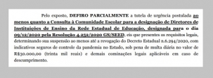 A justiça suspendeu a eleição para direção das escolas estaduais, marcada para esta quarta-feira.