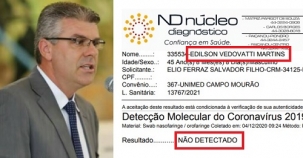 O vereador reeleito Edilson Martins, de Campo Mourão, mostra o resultado negativo de seu exame de covid-19. Ele estava em quarentena desde o início da semana, quande soube que um sobrinho testou positivo. O resultado do exame o vereador saiu neste sábado.