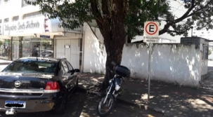 Carro parado na vaga de moto na rua São Paulo, centro de Campo Mourão.