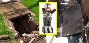 Av. José Custódio de Oliveira, esquina com a rua Edmundo Mercer, no centro de Campo Mourão. Faz tempo que está assim. Detalhe: a tampa está dentro do bueiro.