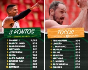 A Liga Nacional de Basquete atualizou o ranking histórico do NBB, que mostra os jogaores que mais se destacaram em vários fundamentos. Três atletas que passaram por Campo Mourão estão na lista. Betinho é o 10.o entre quem mais fez "cestas de três pontos". Já no "top 10" dos tocos, há dois ex-mourãoenses: Mathias em sétimo e Douglas Nunes em oitavo.