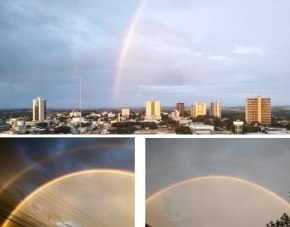 Arco-íris duplo fez sucesso no final da tarde desta terça-feira em Campo Mourão.