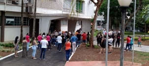 Um grupo de cerca de 50 pessoas, entre comerciantes e funcionários do comércio, protestou contra o lockdown, nesta segunda-feira, em frente à prefeitura de Campo Mourão. Eles usaram panelas e buzinas para fazer barulho. "O comércio também é essencial", repetia uma gravação no carro de som. "Senhor prefeito, não vamos aceitar calados essa decisão arbitrária do senhor e do governador", completava.