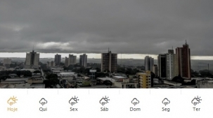 Tá cansado de tanta chuva? Então se prepare que não vai parar tão cedo. Pelo menos é o que diz a previsão do Simepar para Campo Mourão. Nos próximos 14 dias serão sete de chuva e sete parcialmente nublado com pancadas de chuva. Ou seja: choverá todo dia. A foto é desta quarta-feira, às 10h, quando a previsao é de dia parcialmente nublado. Na quinta é chuva.