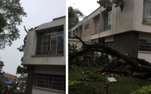 Susto nesta quarta-feira à tarde na prefeitura de Campo Mourão. Uma árvore caiu durante a chuvarada e destelhou parte do paço municipal, que teve salas alagadas. Aliás, caiu bem em cima do gabinete do prefeito. Em tempo: Tauillo Tezelli estava em Curitiba. Ufa!...