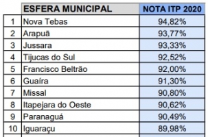 Na região, Ubiratã saltou para a primeira posição (16ª no Paraná).