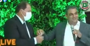 O agora ex-prefeito Zé do Caixao, derrotado por Buscariol, participou e teve direito a discurso.