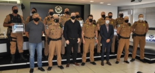 A Acicam homenageou nesta sexta-feira os nove policiais militares que participaram, semana passada, da prisão de dois homens durante assalto às lojas Colombo de Campo Mourão. A dupla foi presa ainda no interior da loja. Tudo foi filmado e não foi dado nenhum tiro. O assalto foi pela amanhã. No início da noite já havia alvará de soltura para liberar os dois homens.