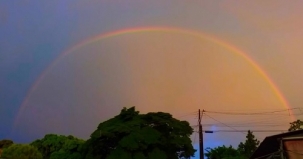Arco-íris em Campo Mourão, visto do jardim Aeroporto. Fim de tarde de chuva. Mateus Berbet Pereira