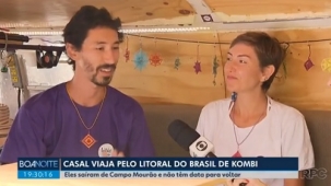 Casal de Campo Mourão virou destaque na RPC/Globo. Motivo? Manu e João Victor Iritsu largaram tudo para percorrer o litoral do País numa Kombi 1991, que foi adaptada e ganhou cama e fogão. Saíram dia 20 de dezembro, estão no litoral do Paraná e depois seguirão litoral acima, sem data para voltar. Junto com eles vão dois cachorros. A renda do casal será com venda de artesanatos e fotos.