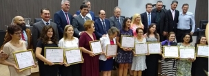 Teve sessão solene nesta quarta-feira na Câmara de Campo Mourão. Foi para a entrega do prêmio Mulher Cidadã. que comemora a passagem do Dia Internacional da Mulher. Onze mulheres foram homenageadas. Onze vereadores e o prefeito Tauillo Tezelli participaram. Confira: