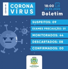Campo Mourão segue com nove casos suspeitos de coronavírus e nenhuma confirmação. É o que mostra o boletim da Secretaria de Saúde desta segunda-feira (18h). A novidade é que três dos quatro exames de precaução tiveram resultados divulgados: todos negativos. Assim, segue apenas um de precaução. Já as pessoas isoladas em monitoramento são 44.