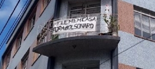 Faixa colocada em sacada de prédio no centro de Campo Mourão pede que as pessoas fiquem em casa e, no embalo, aproveita para o "fora Bolsonaro".